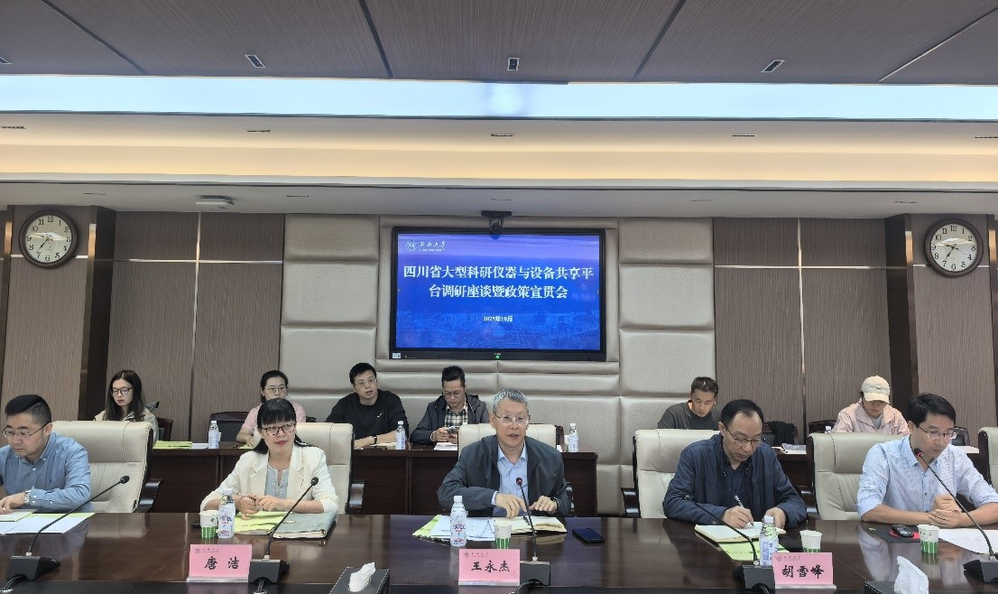 为进一步优化学校大型科研仪器设备资源配置,破解设备共享难题、提升使用效率,10月16日,四川省大型科研仪器与设备共享平台调研座谈暨政策宣贯会西华大学站在郫都校区行政楼212召开。西华大学党委常委、副校长王永杰,四川省分析测试服务中心主任陈钢,米格实验室市场经理周滢龙,相关单位分管领导及管理人员代表出席会议,会议由西华大学实验室与设备管理处副处长郑亮主持。