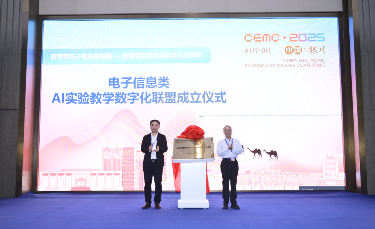 2025年8月8日,在教育部高等学校电子信息类专业教学指导委员会(电子信息教指委)和教育部《实验教学数字化及个性化评价体系》共同体的联合发起下,“AI实验教学数字化联盟(电子信息类)”在银川隆重举行成立仪式。四位院士及二十三位电子信息教指委委员、200余所高校,400余位电子信息相关专业院校领导、骨干教师共同见证了这一重要时刻。