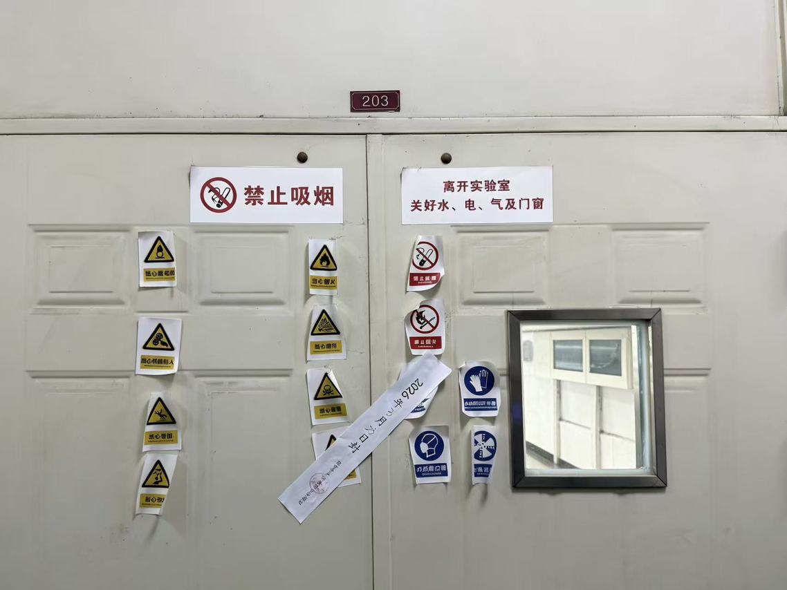 检查发现,我校多数实验室安全管理制度健全、管理规范,师生安全意识较强,但仍有个别实验室存在危化品分类存放不严谨、无危化品使用台账、危化品及危险废物无标签等问题。检查组对存在重大安全隐患的实验室当场宣布立即停止相关实验区域一切教学科研活动并查封,同时向所属单位下达《实验室安全隐患整改通知书》,要求限期整改完成后须经复核验收合格,方可解封恢复使用。